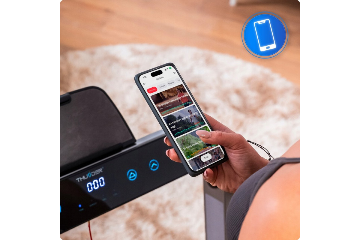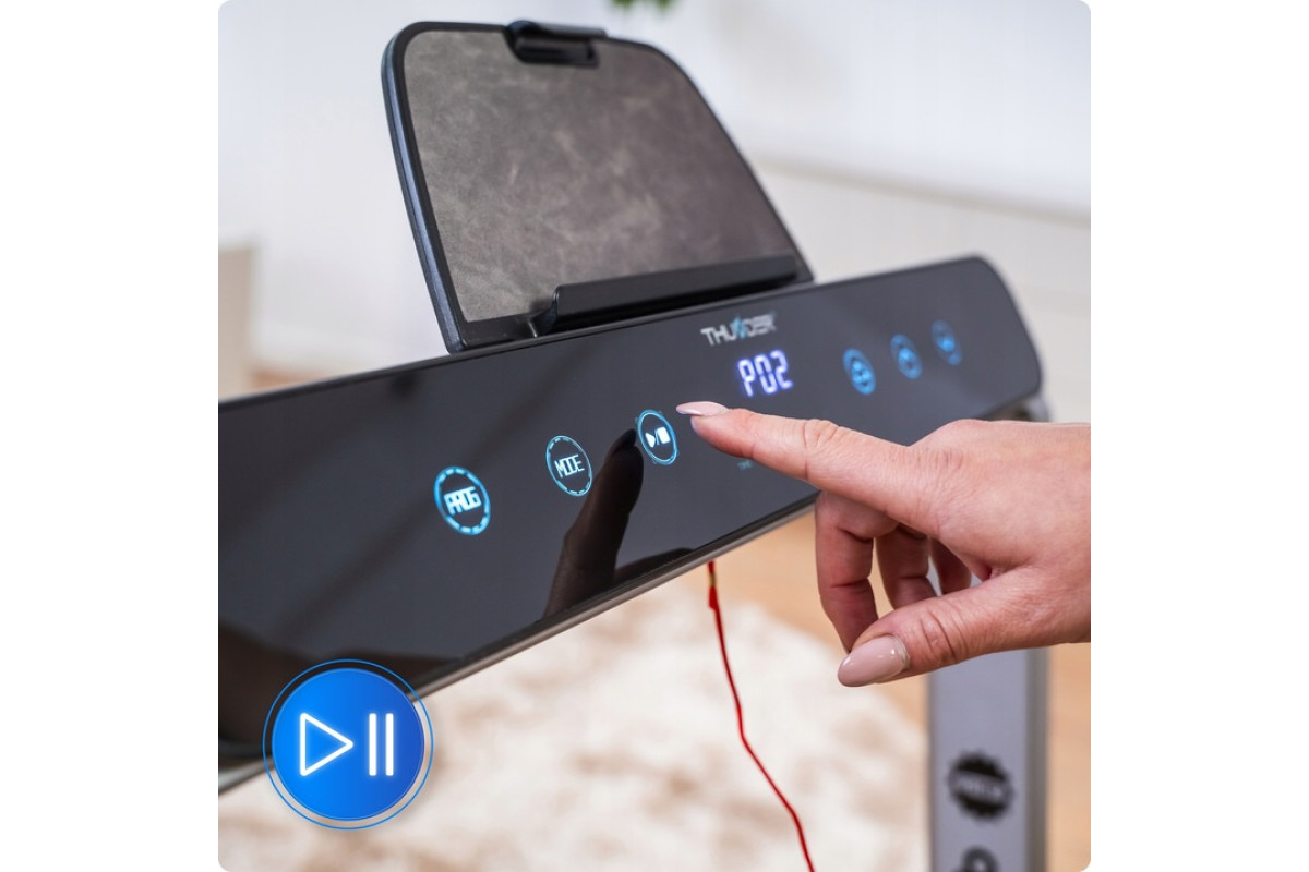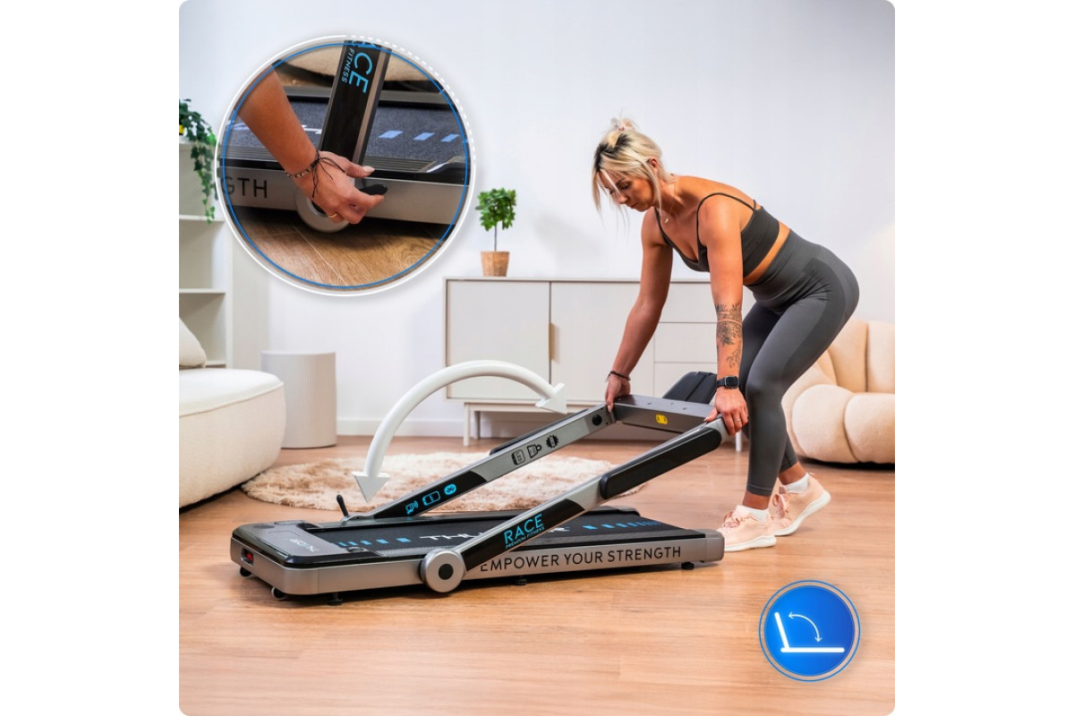 THUNDER RACE-SILVER este banda de alergare electrică modernă premium pentru acasă, care combină compactitatea, puterea și calitatea europeană! Cu motor de 2 CP, viteză maximă 14 km/h, construcție pliabilă și suprafață de alergare 105 × 40,5 cm – alegerea ideală pentru mers rapid, alergare și antrenamente cardio în apartament, birou sau cameră mică fără să ocupe spațiu.