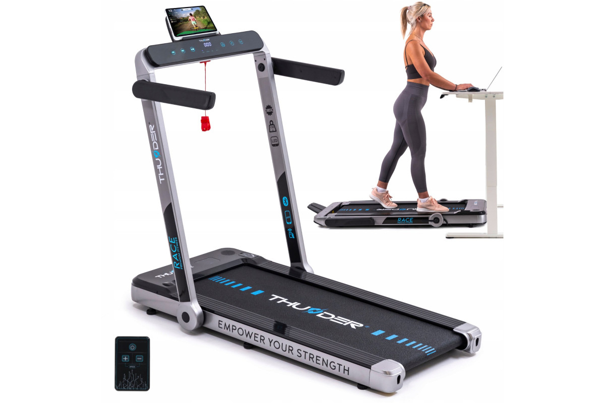 THUNDER Banda de alergare electrică THUNDER RACE-SILVER – Fitness puternic acasă până la 14 kmh cu sarcină maximă 130 kg!
