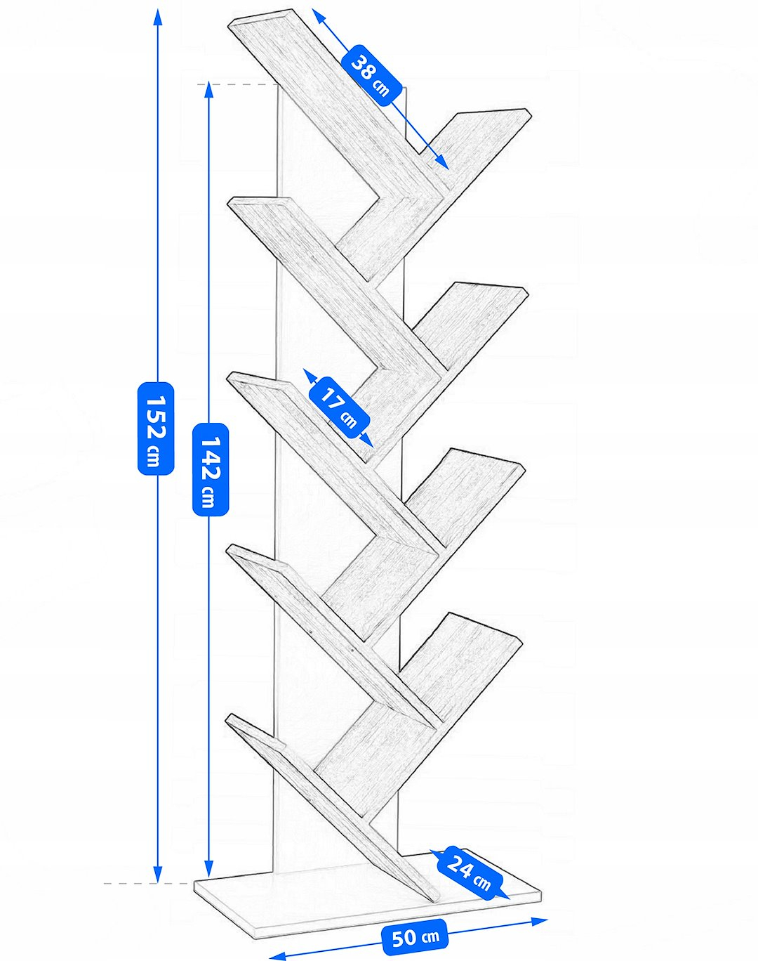 Bibliotecă tip copac Jumi, 152x50x24 cm, Stejar – design original și funcționalitate într-un singur raft