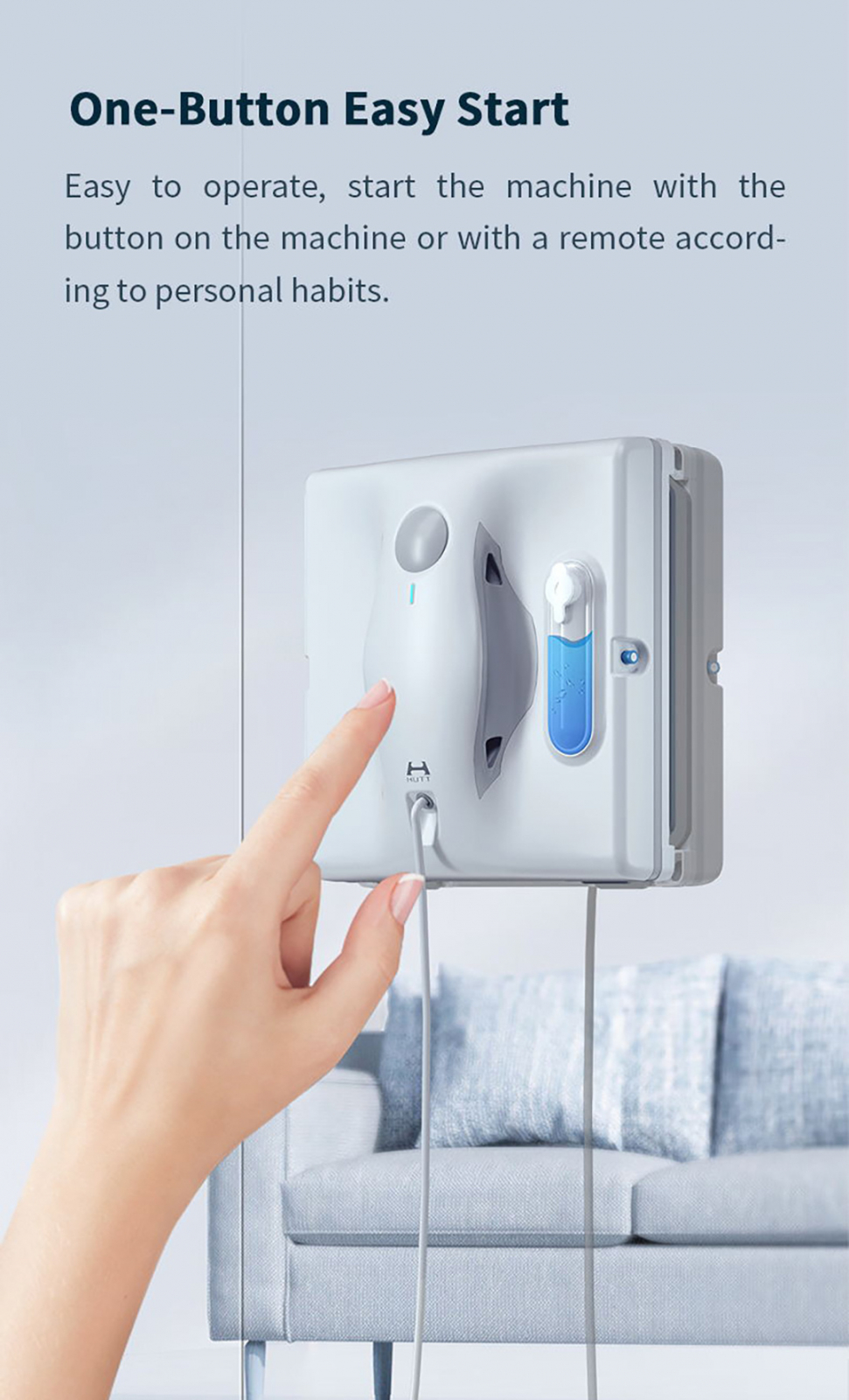 Moduri de curățare variabile: Hutt W8 oferă mai multe moduri de curățare pentru a se adapta diferitelor dimensiuni și forme de ferestre.