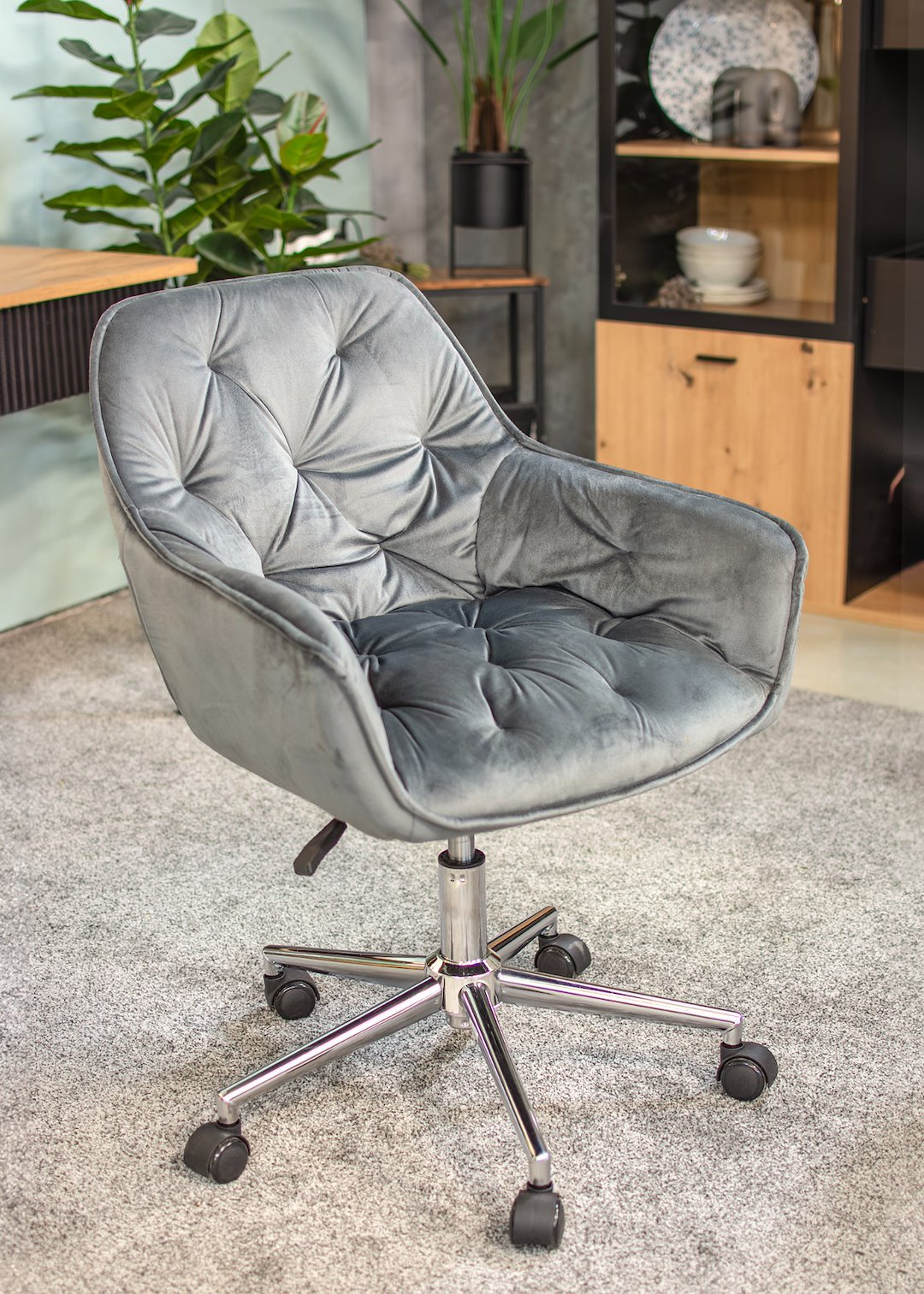 Scaun de birou cu roți Jumi, LARGO, 87x60x62 cm, catifea, înălțime reglabilă, Gri