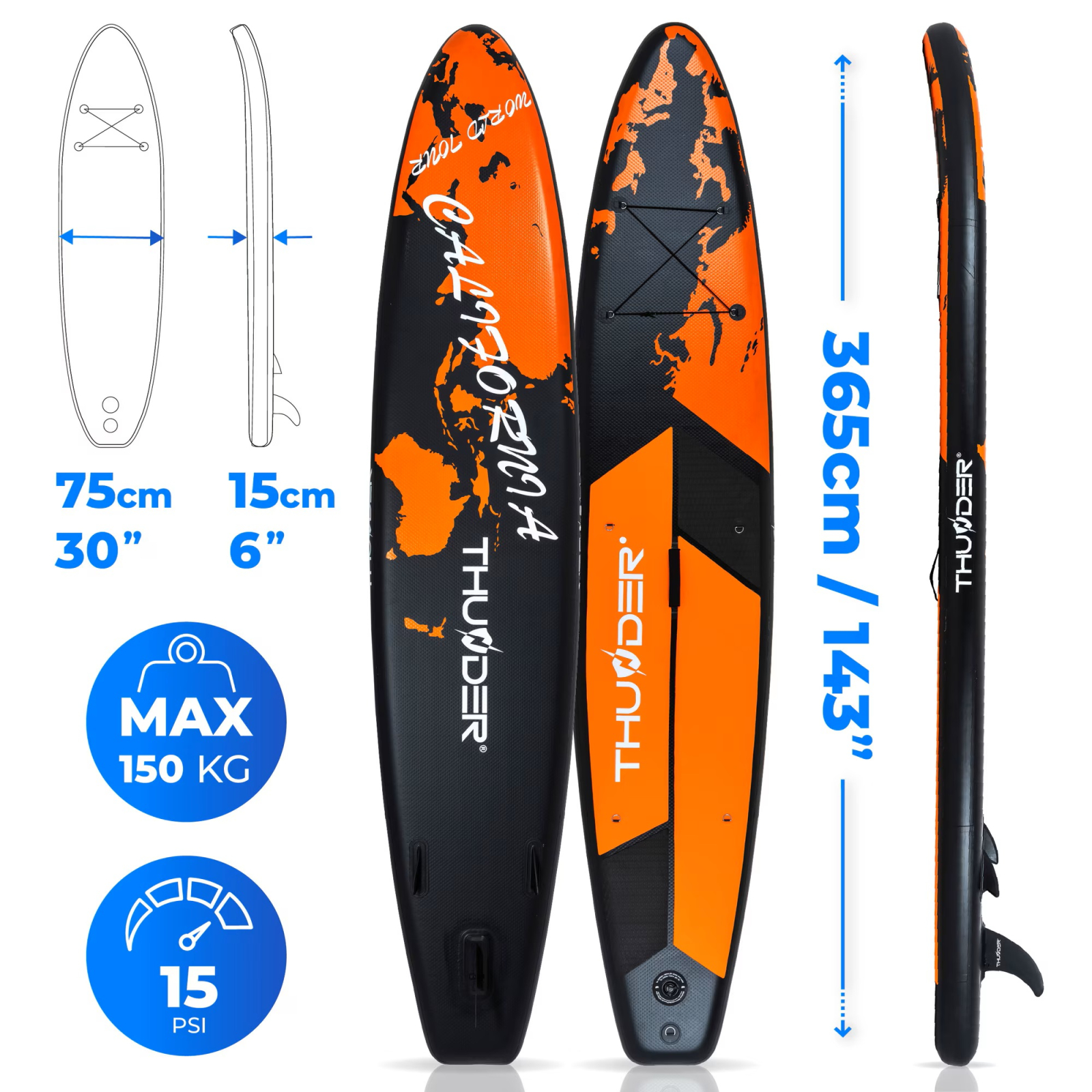 THUNDER Set placă gonflabilă SUP Thunder EARTH 365 x 75 x 15 cm – până la 150 kg, complet echipat