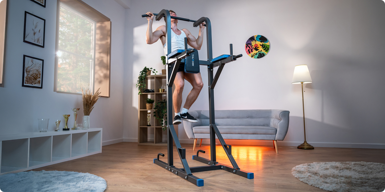 Создайте собственный домашний спортзал с THUNDER® WINGS, многофункциональной рамой для упражнений с весом собственного тела. Идеально подходит для развития верхней части тела, укрепления пресса и рук, обеспечивая стабильность и безопасность во время интенсивных тренировок.