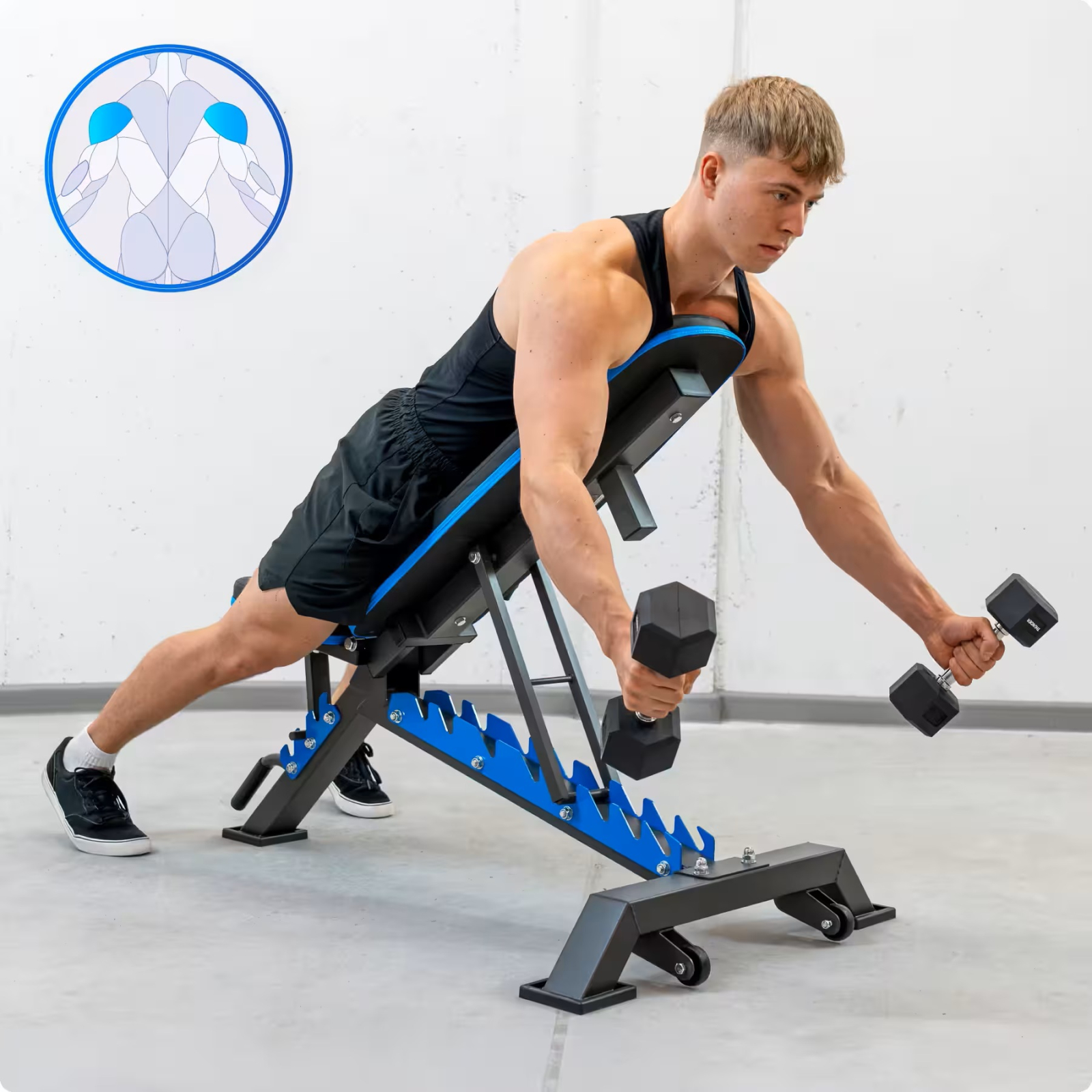 • Максимальная универсальность — прорабатывает все группы мышц на одной скамье