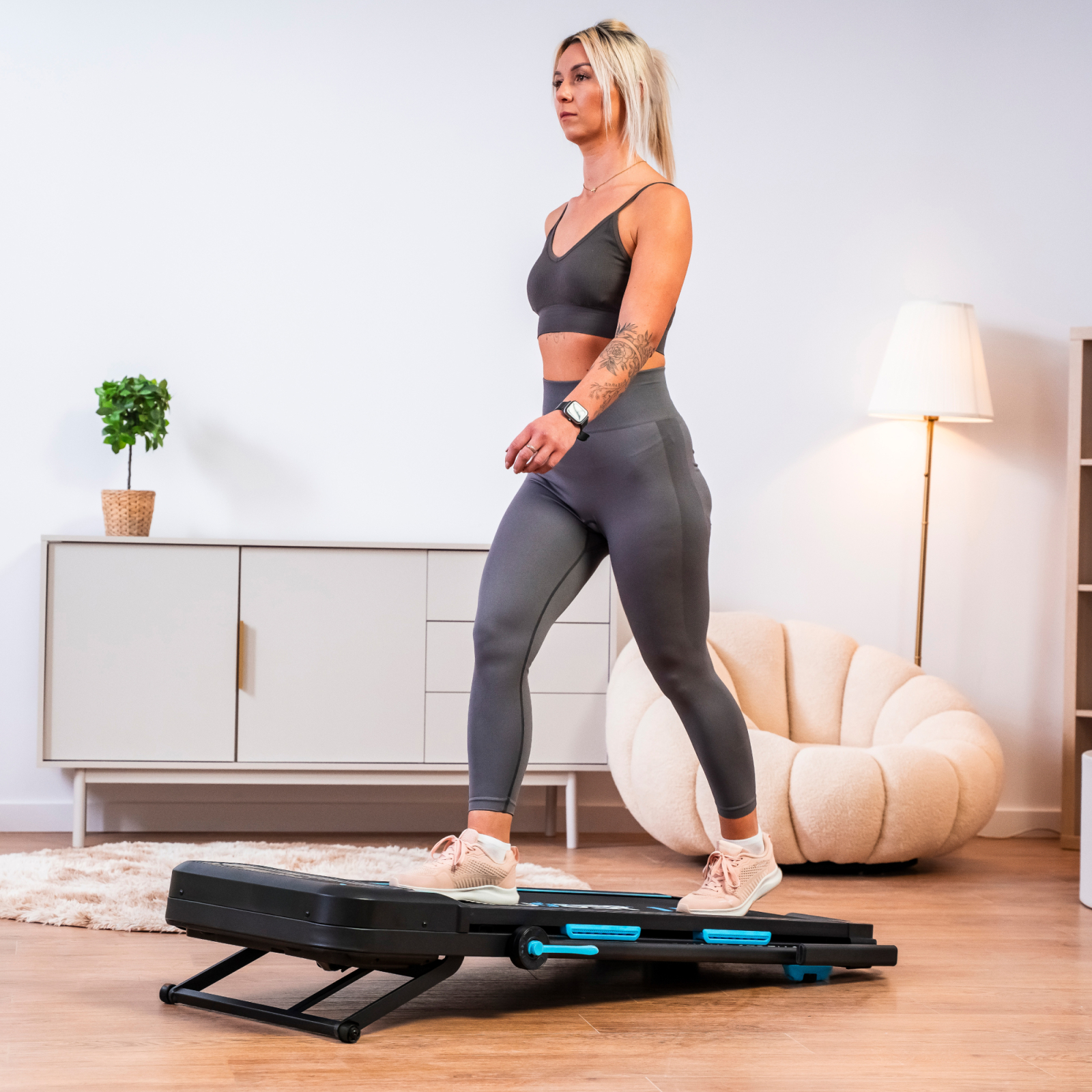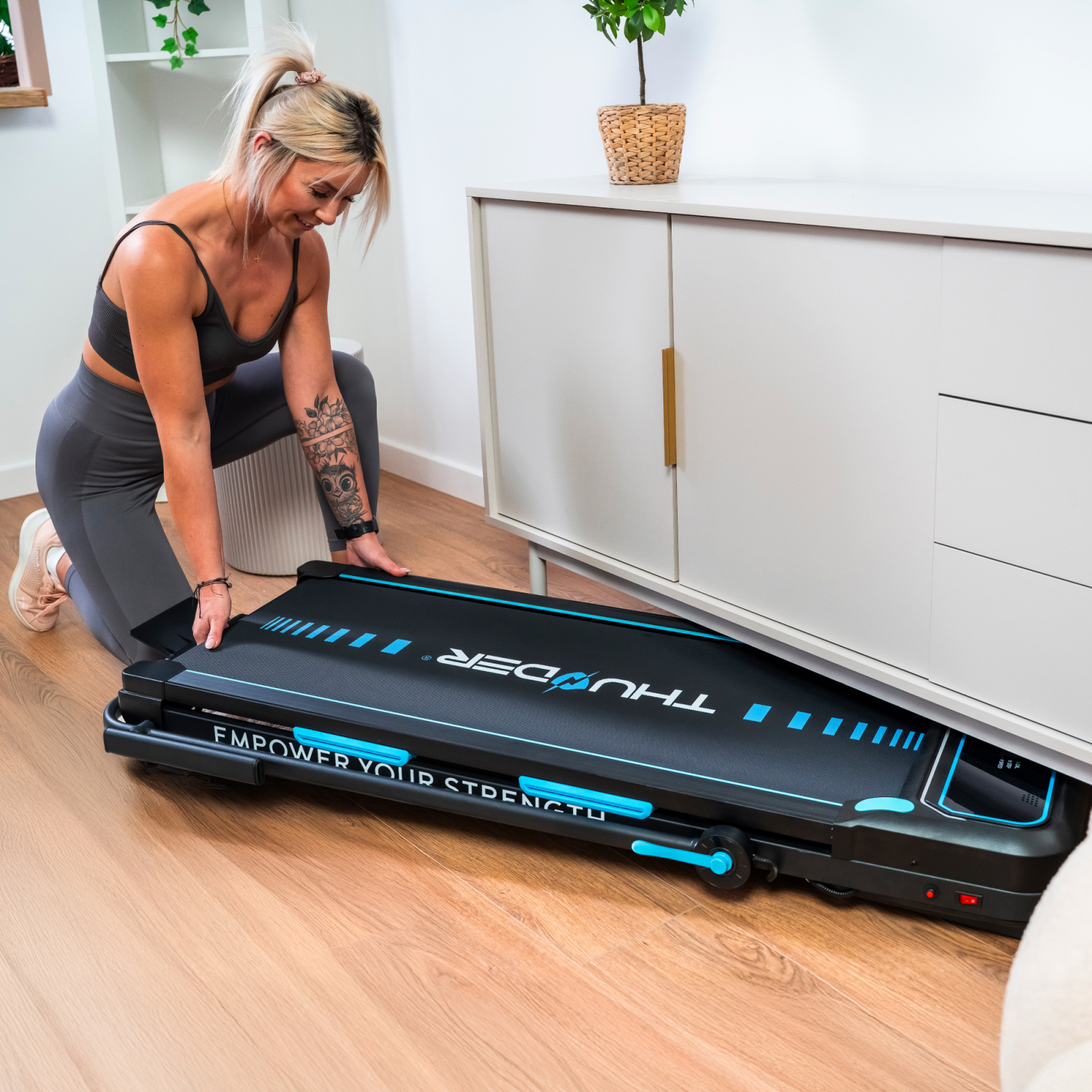 THUNDER VIVA-PRO — премиум беговая дорожка, сочетающая компактность и продвинутые возможности: идеальна для быстрой ходьбы, лёгкого бега или кардио дома, даже под столом! Мотор 2 л.с., максимальная скорость 12 км/ч, автоматический наклон 15 уровней и сверхкомпактное складывание (толщина всего 11,5 см в сложенном виде) — отличный партнёр для ежедневных тренировок в квартире, офисе или маленькой комнате.