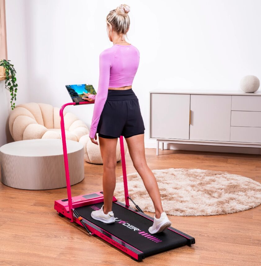 Беговая дорожка THUNDER VIVA розовая — идеальное решение для ежедневных тренировок без выхода из дома! С тихим мотором 1,5 л.с., максимальной скоростью 6 км/ч и ультракомпактным складным дизайном (толщина в сложенном виде всего 10 см) — становится отличным партнёром для быстрой ходьбы, лёгкого бега или кардио в квартире, офисе или маленькой комнате.
