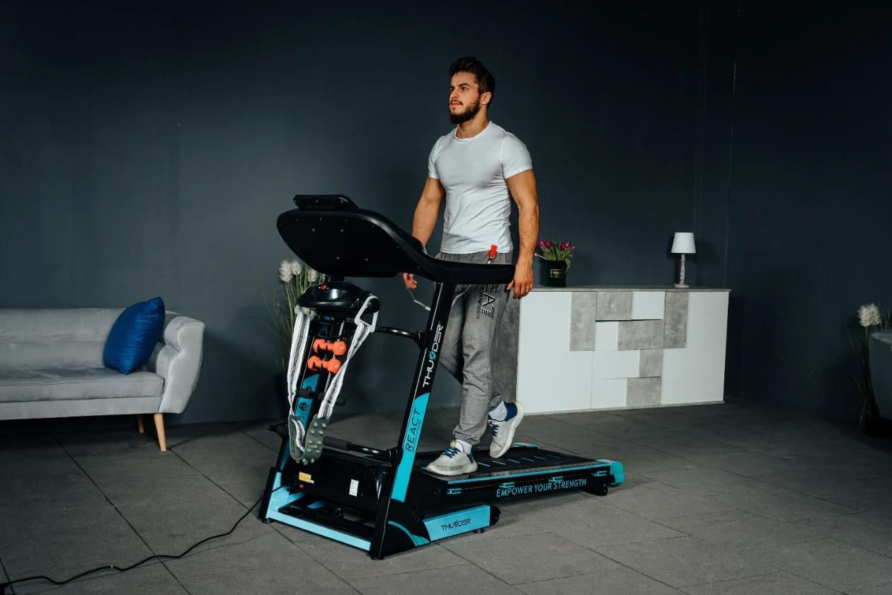 Сделайте шаг к идеальной форме с THUNDER® REACT-DS-BLACK – беговой дорожкой, которая сочетает в себе высокую производительность, современные технологии и стильный чёрный дизайн. Подходит как для домашних тренировок, так и для интенсивных занятий.