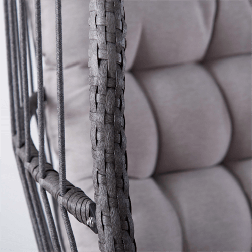 Качели JAMIE Grey дарят глубокий отдых и запатентованную поддержку в 3 зонах, снимая нагрузку с позвоночника. Просторная корзина из ротанга и полиэстера 6 мм, устойчивого к погоде, стальной каркас с порошковой покраской и толстые подушки – идеально для террасы, сада или гостиной.
