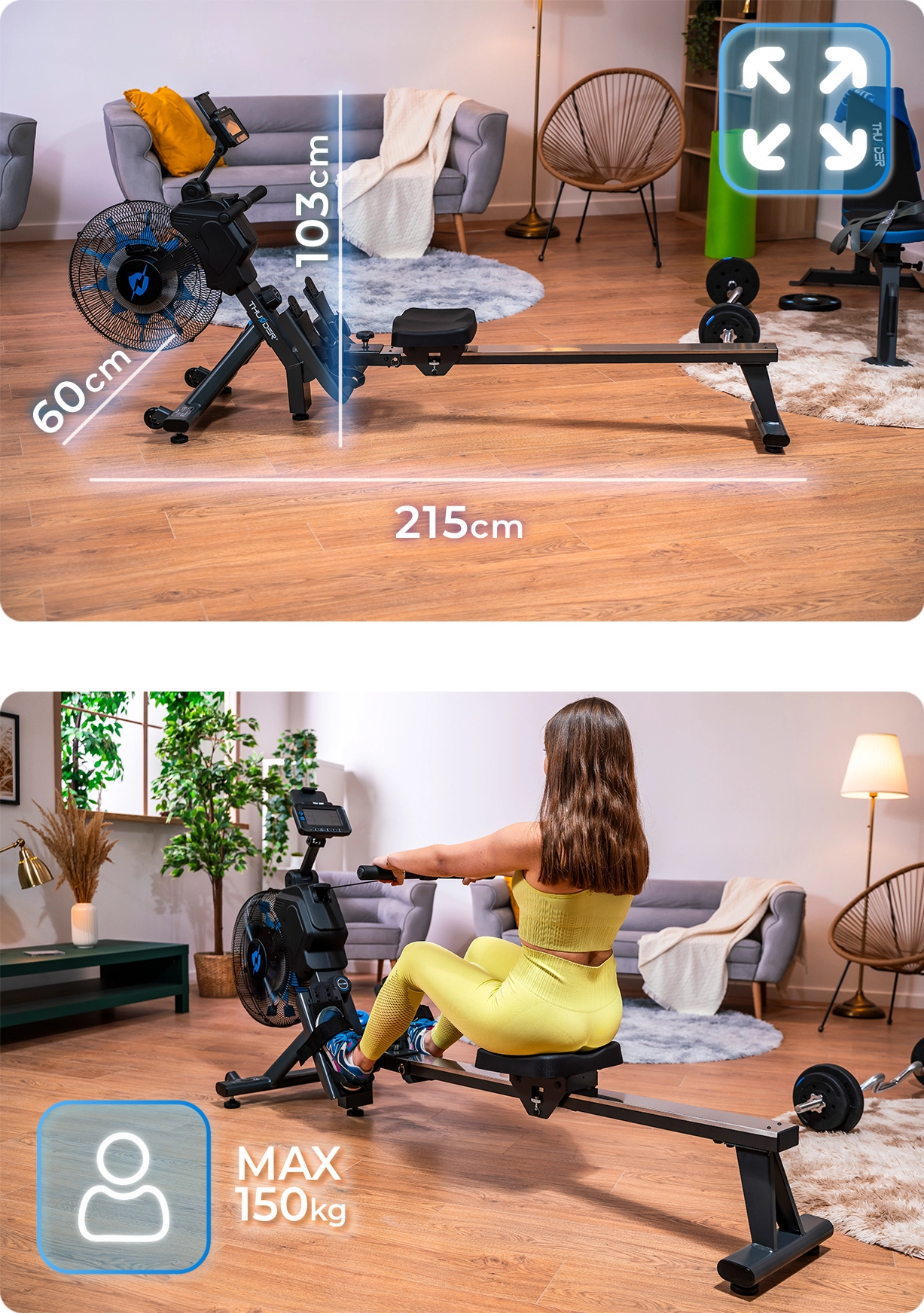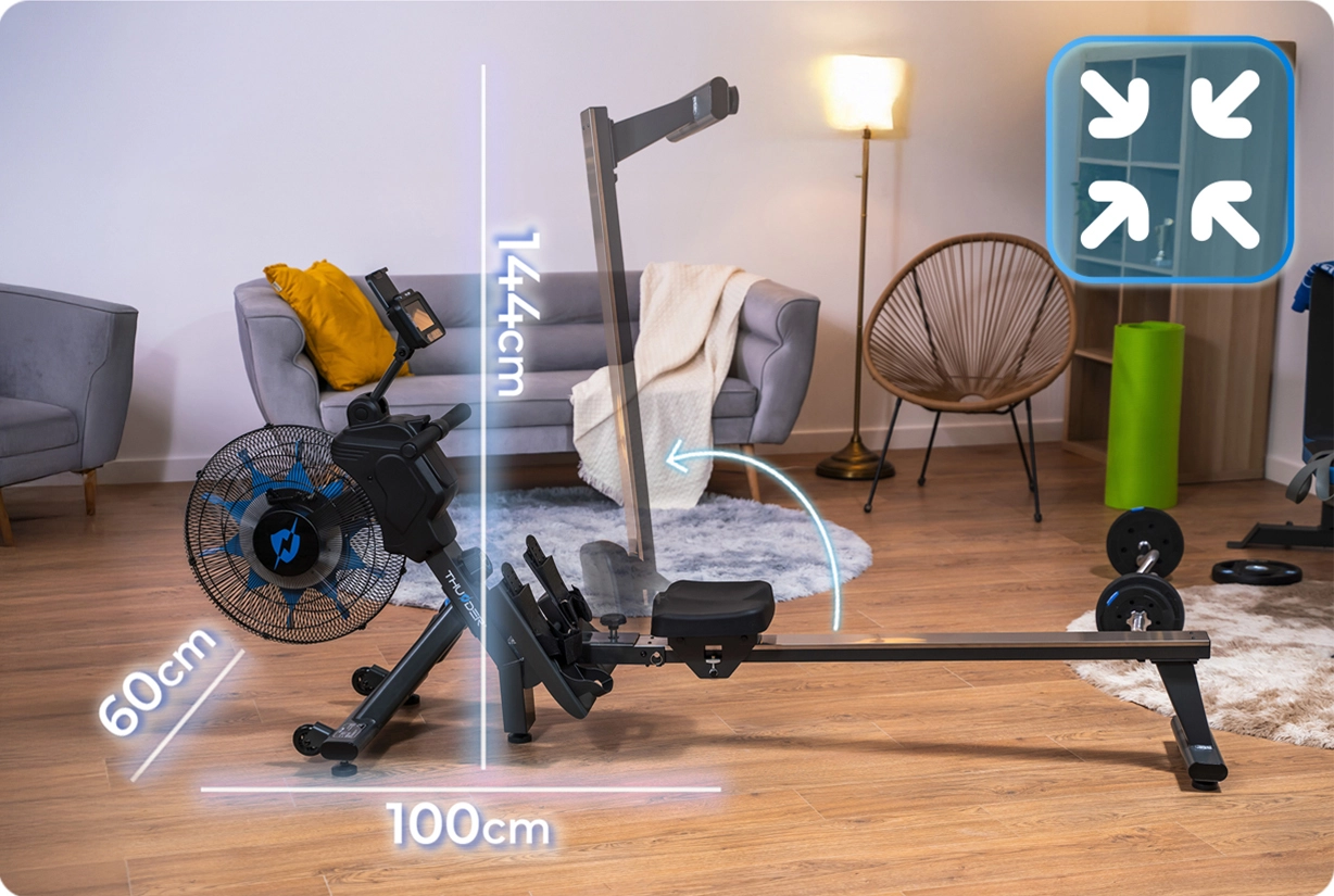 THUNDER FLY — премиум магнитный гребной тренажёр, который превращает дом в полноценную фитнес-зону: одновременно задействует руки, спину, пресс, ноги и улучшает сердечно-сосудистую выносливость, помогая сжигать калории и тонизировать всё тело! С магнитным бесшумным сопротивлением на 26 уровнях, плавным движением и прочной конструкцией — идеален для новичков и опытных пользователей, желающих компактный, долговечный и тихий аппарат без шума.