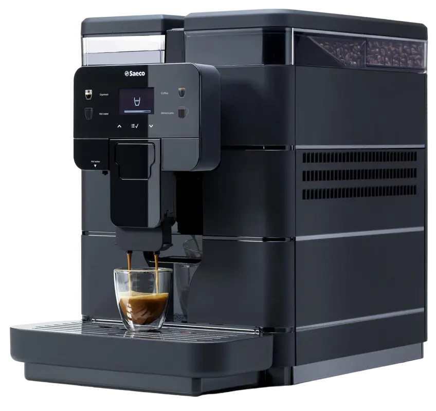 Кофемашина Saeco Royal, Черная сочетает в себе итальянское качество, современный дизайн и технологию премиум-класса. Она создана для тех, кто хочет наслаждаться идеальным эспрессо дома или в офисе — быстро, удобно и с неизменно превосходным вкусом.