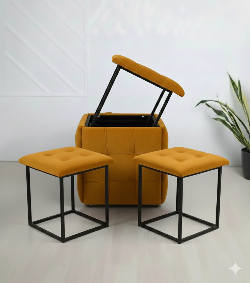 CubeX5 горчичный жёлтый — это куб-трансформер 5 в 1 премиум-класса, который приносит энергию и элегантность в любое помещение! С материалом велюр пушистым в насыщенном горчично-жёлтом оттенке, прочной металлической рамой и компактными размерами 50 × 50 × 50 см — служит креслом, односпальной кроватью, двуспальной кроватью, небольшим диваном или гостевой кроватью, идеален для современной гостиной, спальни, кабинета или маленькой квартиры. Горчично-жёлтый цвет добавляет тепла, оптимизма и стильный акцент любой обстановке.