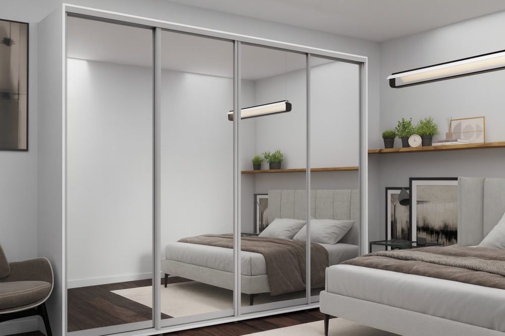 Шкаф-купе Nex Home Зеркало + Белый 280×60×220 см – Роскошная светлая гардеробная с огромными зеркалами