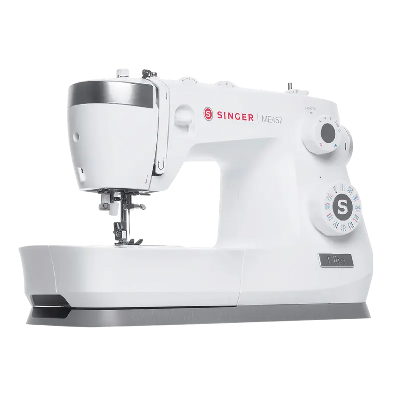 Легко выполняйте швейные проекты с Singer Elite ME457, надежной и универсальной электромеханической машиной. Корпус сочетает металл с прочным пластиком, а элегантный белый дизайн подходит для любого рабочего пространства.