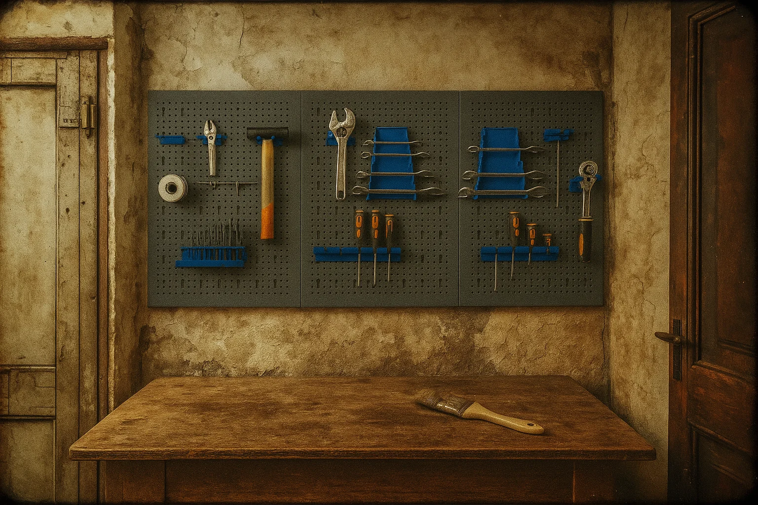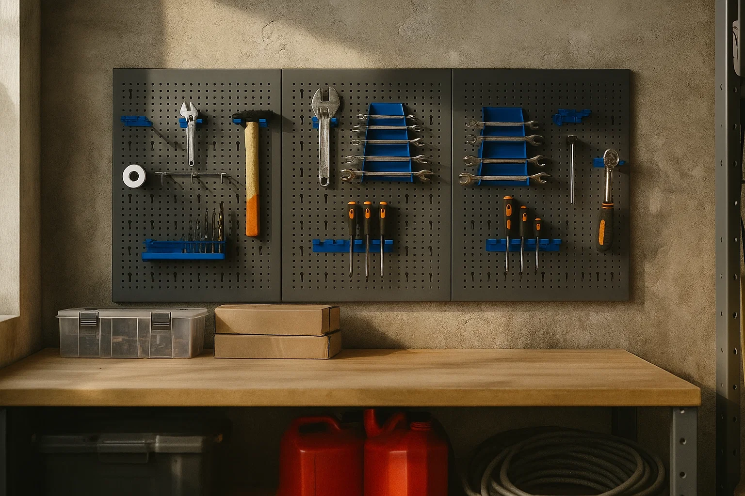 Panou metalic perforat pentru unelte NEX – soluția inteligentă pentru organizarea atelierului