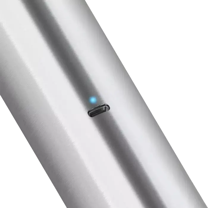 Funcționează pe bază de baterie Li-Ion de 600 mAh, cu încărcare USB Tip-C